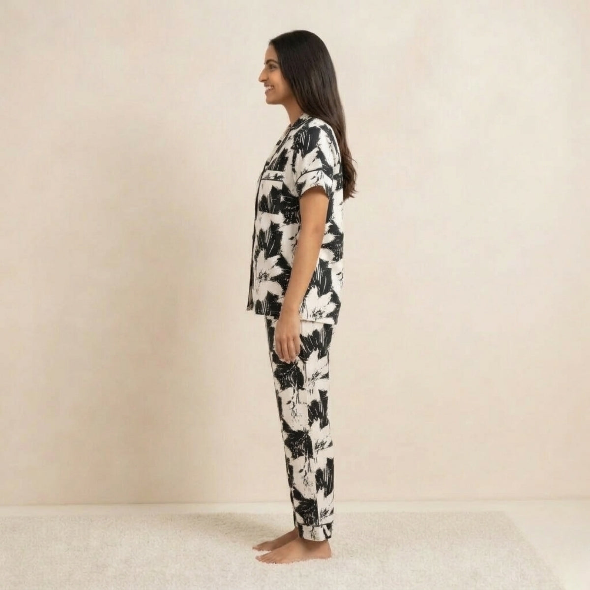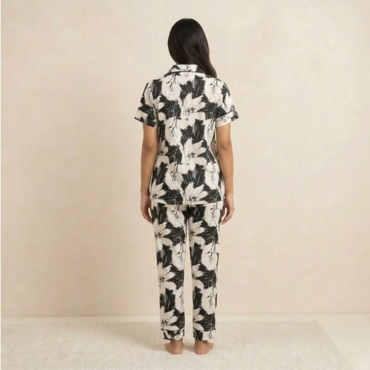 Relax in style with our beautifully designed women's night suit, crafted for ultimate comfort and elegance. Made from soft, breathable fabric, this nightwear set feels gentle on the skin and ensures a cozy night's sleep. The stylish top paired with matching bottoms creates a perfect blend of comfort and fashion, making it ideal for lounging or bedtime. Designed with attention to detail, this night suit adds a touch of charm to your nightly routine.